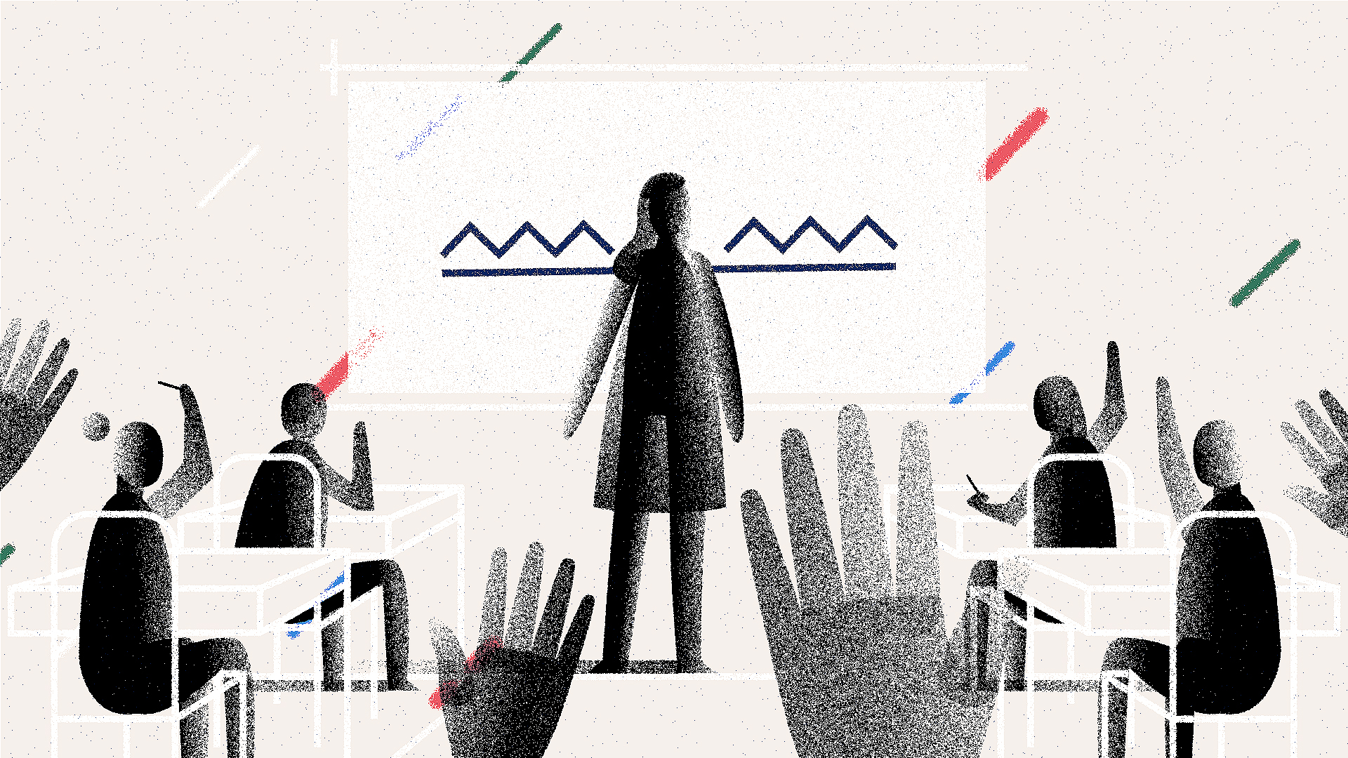 The turn around time for this project was incredibly rapid, so we leaned heavily into a minimal aesthetic and abstraction – while ensuring the tone of the piece matched the moving interviews from the two real and devoted teachers.